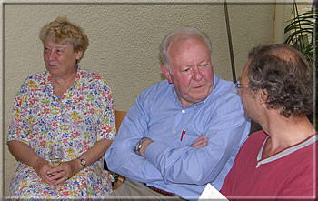 Pierre van Craenenbroeck-Moris im Gespräch mit Jurgen Stigter, der Belgier wäre beinahe mit einer kalten Dusche in die KWA aufgenommen worden; links Adelheid Klittich-Pfankuch. -
