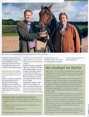 Remco Heite aus Wolvega (Friesland) war uns bisher vornehmlich als Sammler bekannt, ein Artikel von Minze bij de Weg im holländischen schaakMagazine mit dem Titel "We willen het toernooi met het paard worden" ["Wir wollen das Turnier mit dem Pferd werden"] hat unsere Kenntnisse schlagartig erweitert: