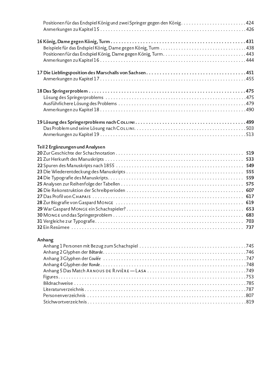 Im zweiten Teil findet man auch eine umfangreiche Biografie von Monge und Betrachtungen zu seinem schachaffinen Umfeld. Wer hätte z.B. gewusst, dass die berühmten an der École Polytechnique lehrenden Physiker Coriolis und Ampère begeisterte Schachspieler waren? Abgeschlossen wird das Werk mit einem Vergleich der ermittelten Profile von Chapais und Monge.
