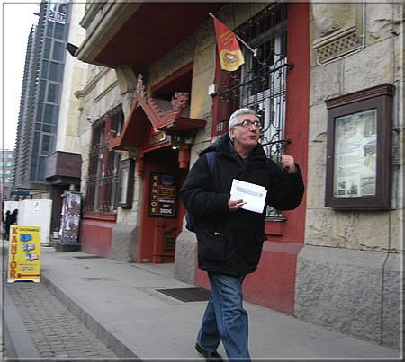 Tony Gillam vor unserem Hotel - er war auf der Suche nach einer Wechselstube, die sich aber alle als geschlossen erwiesen. (Seine Absicht war, polnisches Kleingeld aus englischen Charity-Sammlungen zu wechseln.)