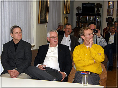 Das Auditorium in Erwartung der anstehenden Ereignisse. (vorne, von links:) John Donaldson, Gunnar Finnlaugsson, Claes Løfgren; dahinter Per Skjoldager und (mit Kamera) Calle Erlandsson.