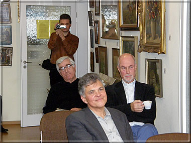 (sitzend) Tony Gillam, Andreas Saremba und Bob van de Velde; stehend (mit Kamera) unser Dresdner Mitglied Frank Schubert -