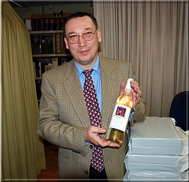 Zum Schluss verteilte Karl Klittich das Überraschungsgeschenk, jedes KWA-Mitglied erhielt einen Karton mit drei Flaschen eines edlen Tropfens - gleichzeitig eine "Schach-Memorabilie" (in limitierter Auflage), denn die Flaschen tragen eigens zu diesem Anlass hergestellte Etiketten mit dem KWA-Vereins-Logo. Jedenfalls eine großartige Idee des Hauses Klittich-Pfankuch - manches Mitglied mag bedauern, an diesem Tag nicht nach Braunschweig gekommen zu sein!