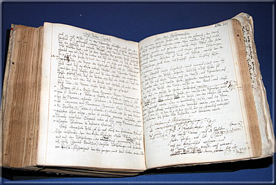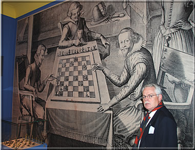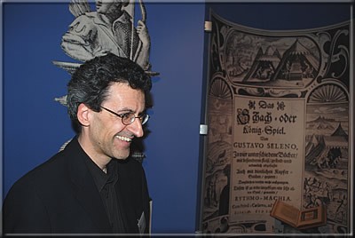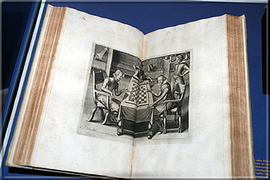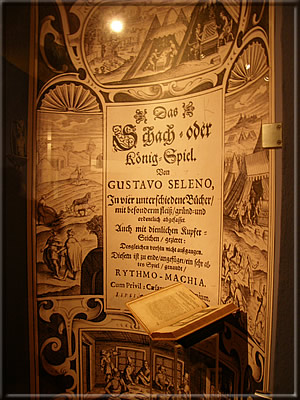 Die Führung durch die Ausstellung konzentrierte sich auf die Schachschätze, die aus der Wolfenbütteler "Bibliotheca Augusta" überführt worden waren, im Mittelpunkt stand natürlich das erste Schachlehrbuch in deutscher Sprache, das berühmte Schach- oder König-Spiel von Gustavus Selenus, erschienen im Jahre 1616 in Leipzig.