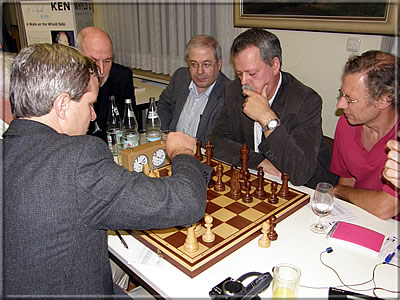 Mit der sich nun anschließenden Konsultationspartie von John Donaldson gegen die "KWA-Meister" strebte der Abend einem weiteren Höhepunkt entgegen: Es ist schon bemerkenswert, welche freudige Begeisterung und Hingabe unsere Mitglieder jenseits allen sammlerischen Eifers am Brett entwickeln können.