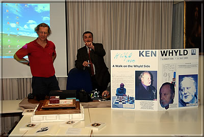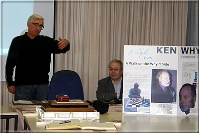 Die technischen Vorbereitungen sind abgeschlossen, hinter dem Ken Whyld-Poster agiert unsichtbar unser Webmaster als Bediener des Notebooks. Die beiden Herren im Bild bedürfen sicherlich keiner Vorstellung ... -