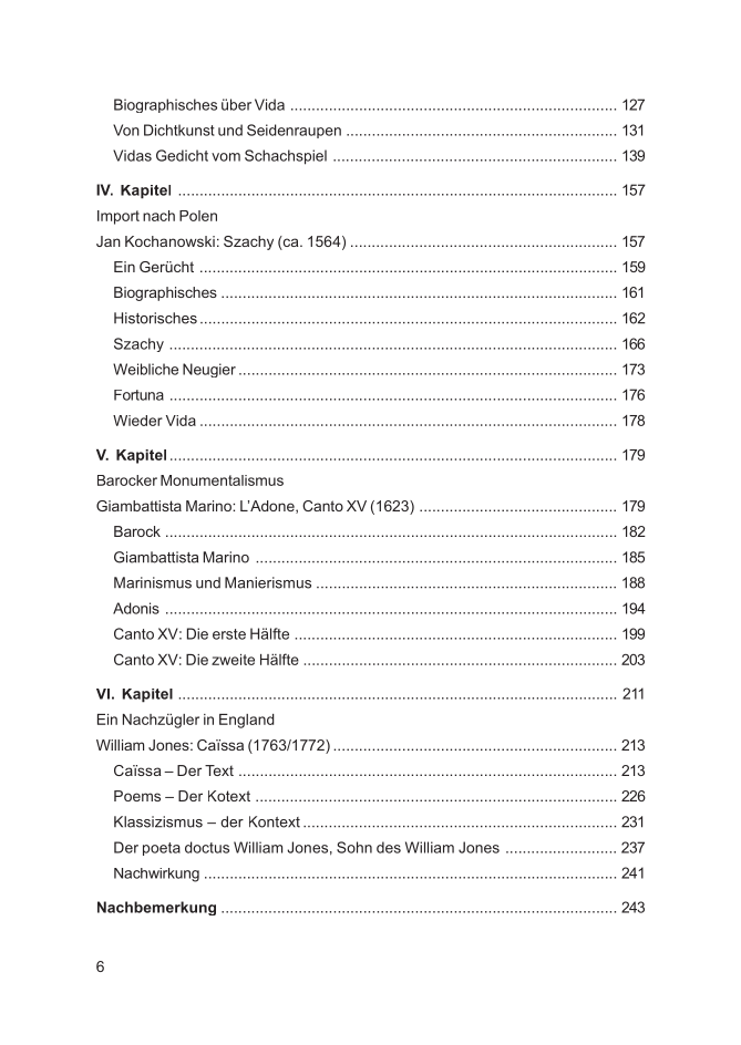 Das Kapitel VI bildet mit dem Gedicht Caïssa von William Jones (1746-1794) den Abschluss der Untersuchung Matthias Aumüllers.