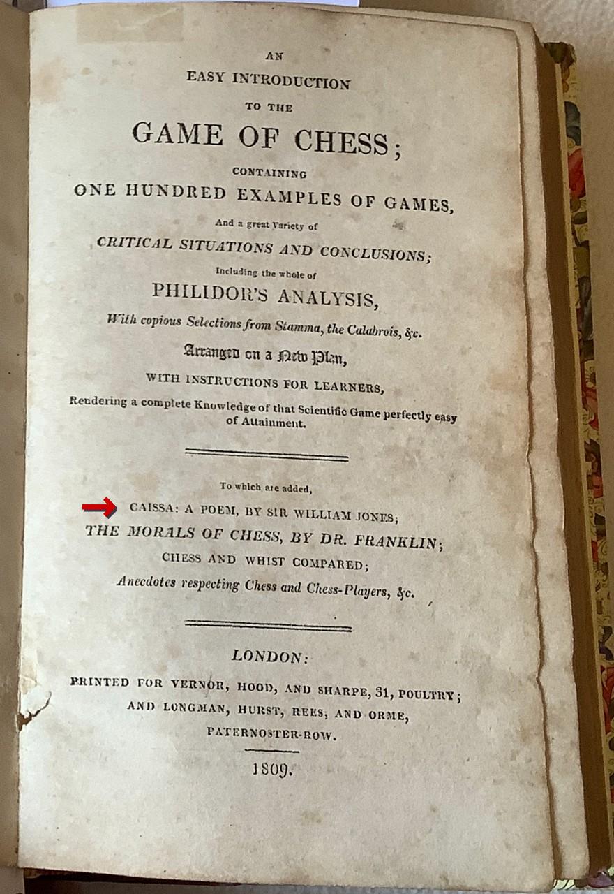 Da die CH&LS (vormals KWA) zahlreiche Mitglieder in den USA und in England hat, möchte ich etwas ausführlicher auf das Gedicht Caïssa von William Jones eingehen.