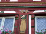 Details aus der prächtigen Fachwerkfassade des Magistratsbaus – das Rathaus-Männlein praktiziert Abwehrzauber gegen böse Geister. -