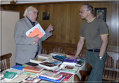 Ralf Binnewirtz und Günter Büsing bei der Begutachtung neuer Problemliteratur am Büchertisch von -be- -