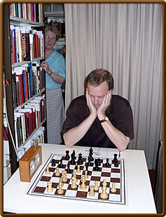 Weder der "gute Geist" im Hintergrund noch die massive Schachbuch-Front von der Seite konnten Wolfgang Pähtz "retten". -