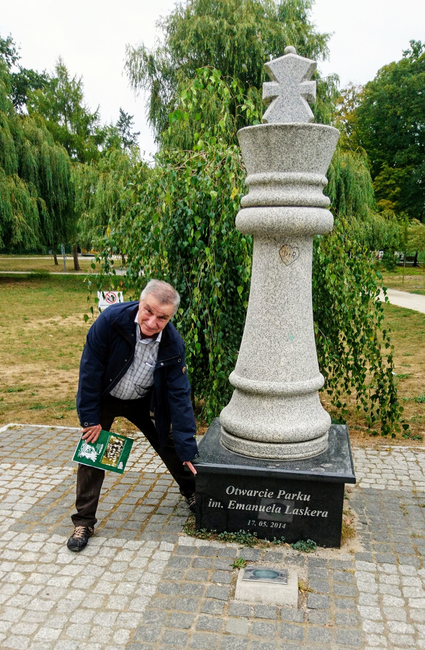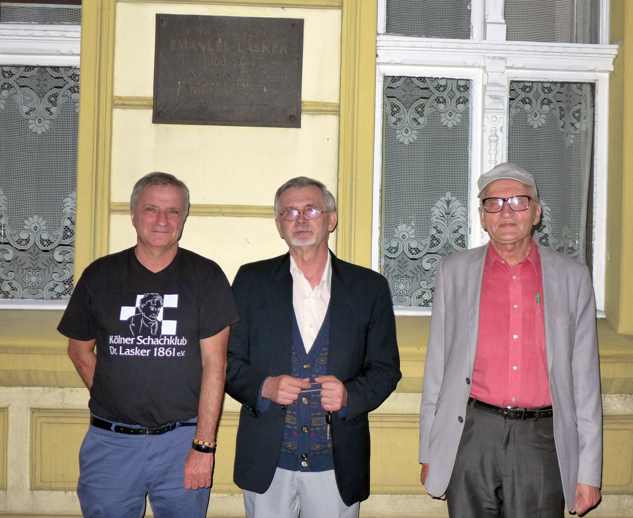 Kazimierz Hoffmann, Bernd Schneider and Tomasz Lissowski in front of Lasker's birthplace