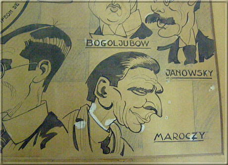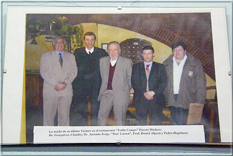 The Danish GM Bent Larsen (1935-2010) with Argentinean chess friends, among them Goncalves and Alpern. -