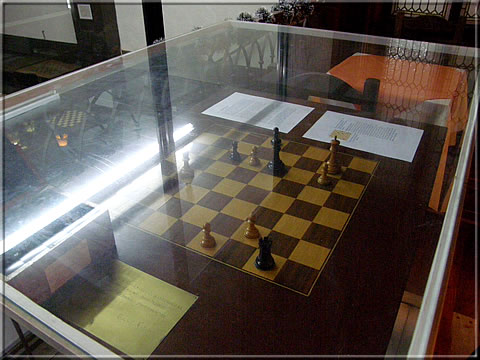 On the gallery of the new "Sala Fischer": The chess table of the candidates final 1971 Fischer - Petrosian -
