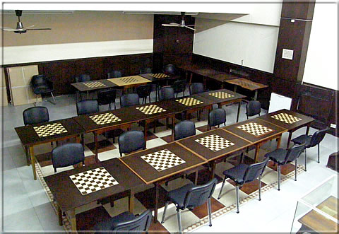 Chess table in the not yet totally completed "Sala Larsen" in the top floor -