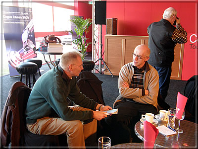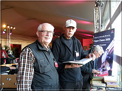 bernd ellinghoven shows his Scacchia Ludus I to Henri Serruys