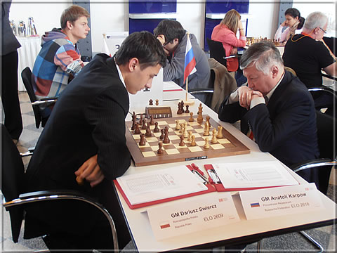 Anatoli Karpov vs Dariusz Swiercz (Poland) with an inimitable endgame (1-0).