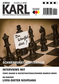 The award just given the German magazine KARL by the DSB (German Chess Federation), the Deutsche Schachpreis 2014, was certainly a pleasing surprise: www.schachbund.de/news/der-deutsche-schachpreis-2014.html.