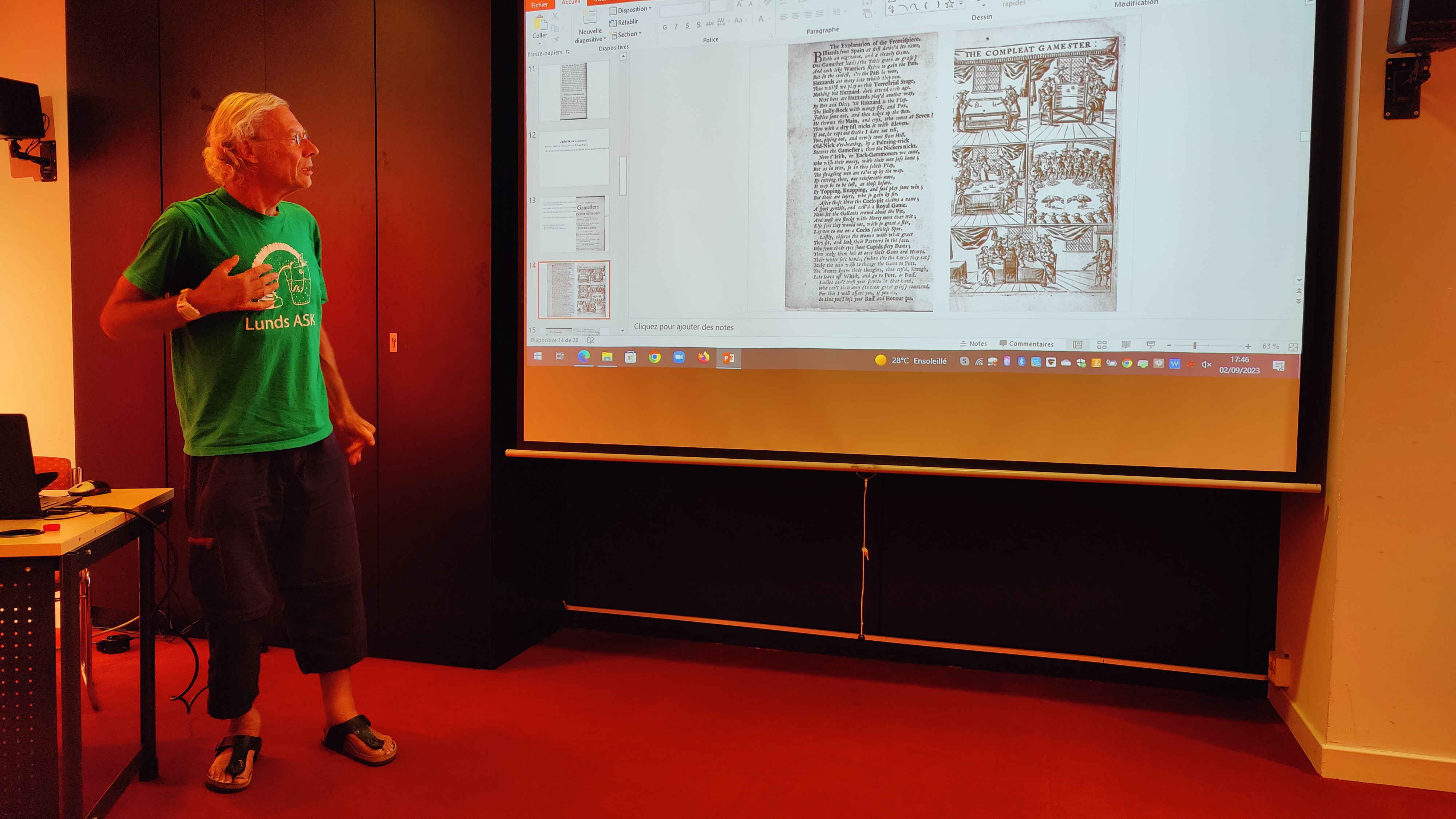 A fascinating day at the municipal library ended with a talk by Dr Jurgen Stigter on the classic works devoted to the popular games of the time, (...). Jurgen used the example of draughts to show that it is not always possible to draw reliable conclusions about the spread of the game from the contents of books, as draughts, although a popular game, is not mentioned in some of them.