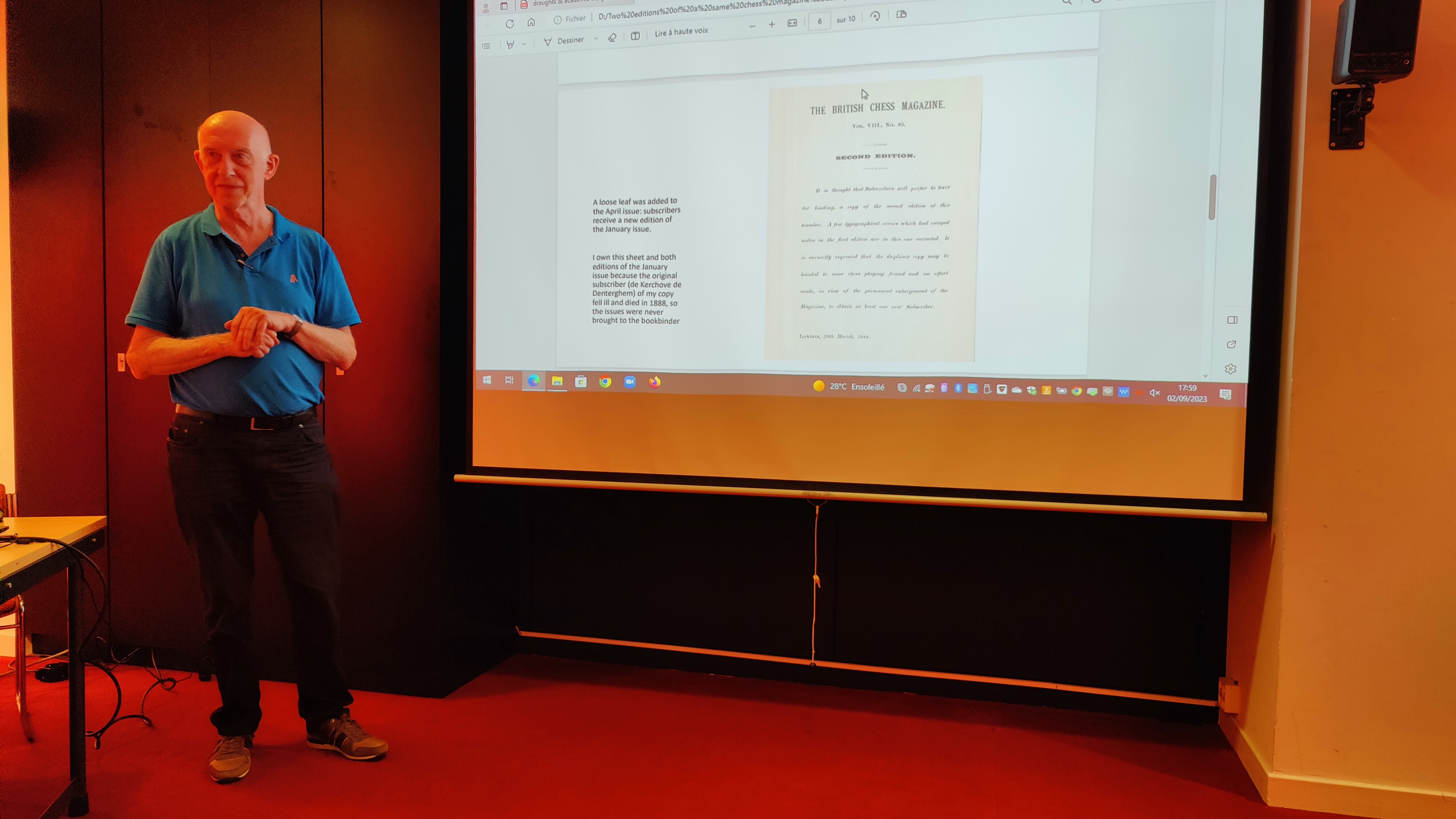 Henri Serruys (Belgium) presented the very special January 1888 issue of the BCM (British Chess Magazine).