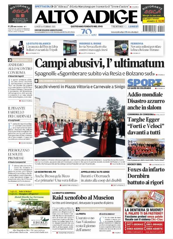 After all, the event appeared on the title page of the Italian newspaper with the highest circulation in South Tyrol, a paper which generally doesn’t write about chess at all: