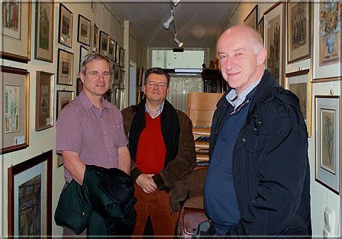 John Donaldson, Guy Van Habberney and Henri Serruys in the corridor of the auction house. -