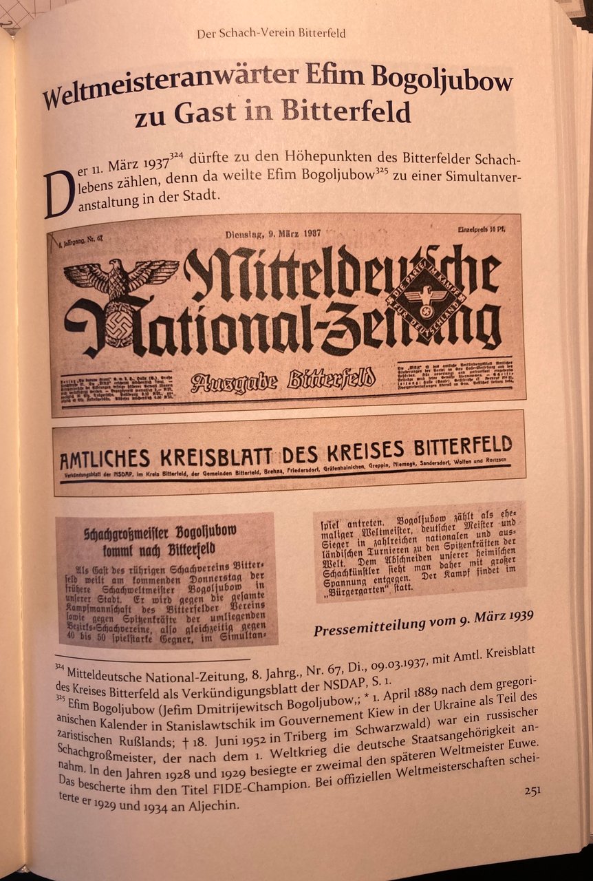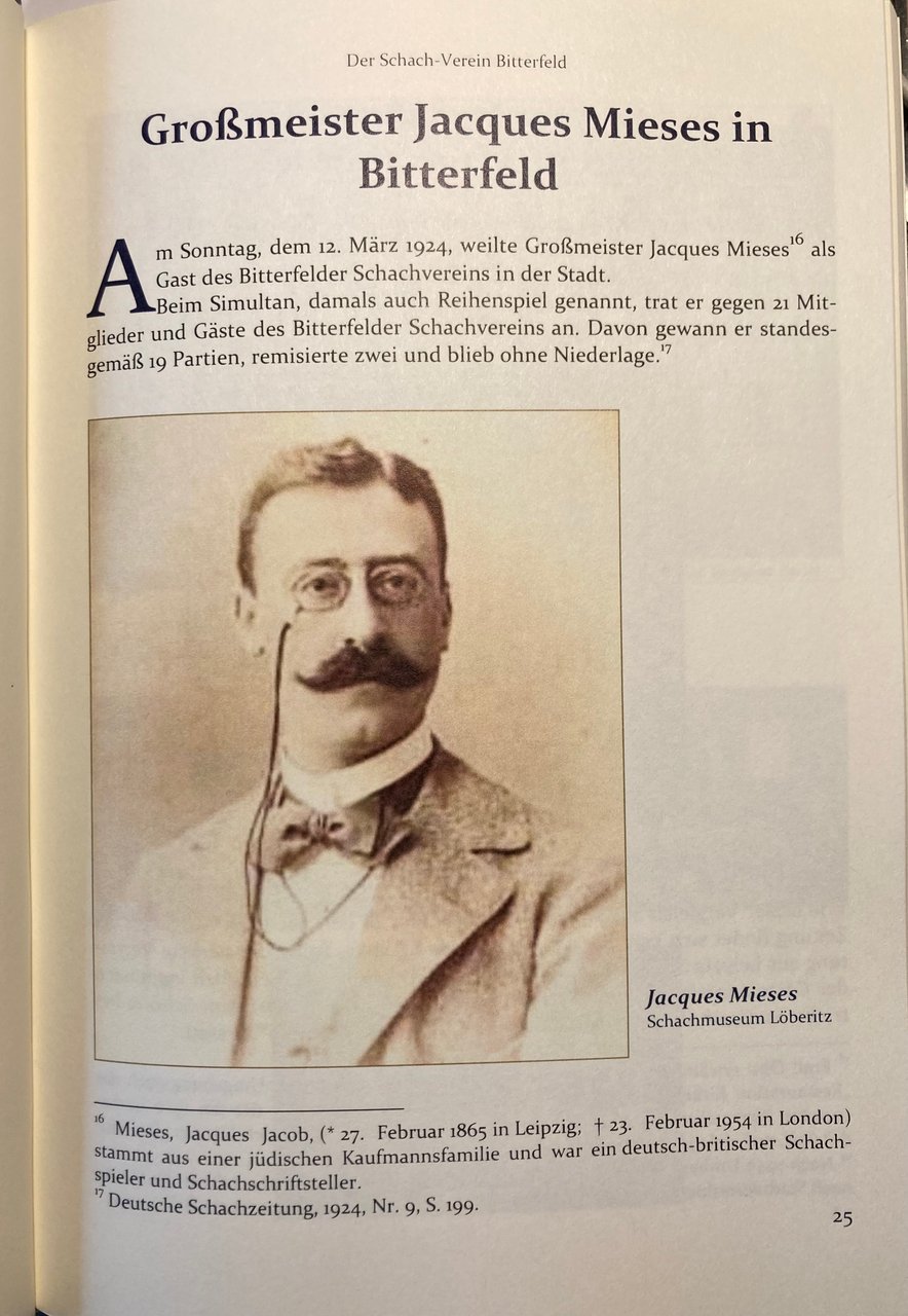 I would like to emphasize two things from the foreword by the author, Konrad Reiß. He has rightly worked through the life and chess history of the Jewish merchant Max Nussbaum in this chronology (pp. 169-177 and others) and, this should also be emphasized, he has formulated it in an appropriate and source-oriented manner in terms of chess and history. As Konrad Reiß's research has shown, Max Nussbaum was a co-founder of the Bitterfeld chess club, was excluded from the board in 1933 like thousands of other Jews and was murdered in Auschwitz in 1944.