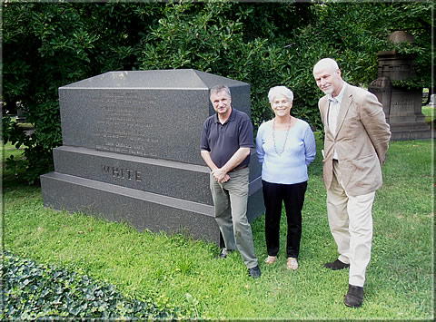 Michael Negele, Lissa Waite and Bob van de Velde at the grave of John G. White at the Lakeside Cemetery.