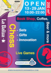 Several KWA members have mentioned that they will attend the Tata Steel tournament in Wijk aan Zee, during the second weekend (January 21st and 22nd). They thereby follow a long standing tradition. In the ‘rich’ years of the tournament the organisers provided a dedicated space in the commentator’s tent for the KWA to meet. Unfortunately those years have gone and we had to improvise to come together, with varying success. Thanks to the efforts of our honarary member Jurgen Stigter, Jozias Hillenkamp of the Raindropchess company (www.raindropchessmedia.com) has offered to the KWA the meeting space in their chess shop La Baliza in Wijk aan Zee. This shop is only open during the tournament. There will a bar available for snacks and drinks as well.