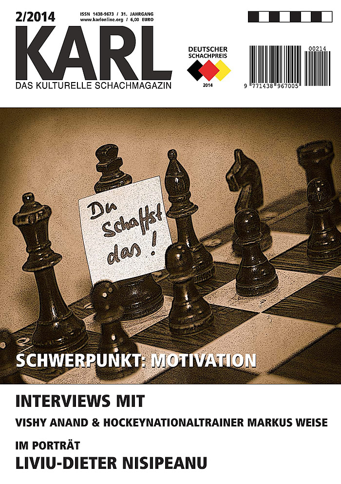 The award just given the German magazine KARL by the DSB (German Chess Federation), the Deutsche Schachpreis 2014, was certainly a pleasing surprise.