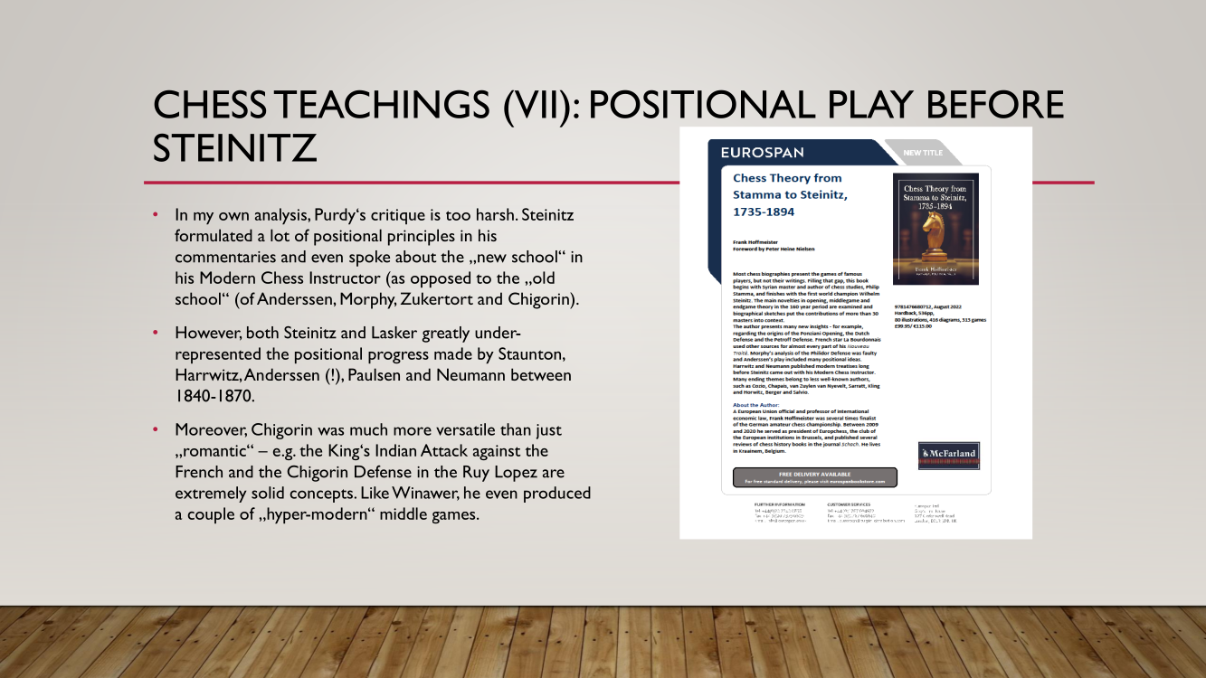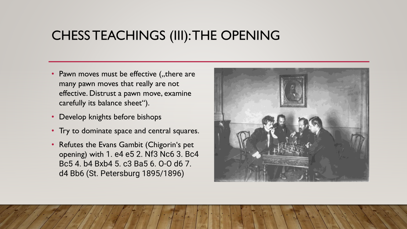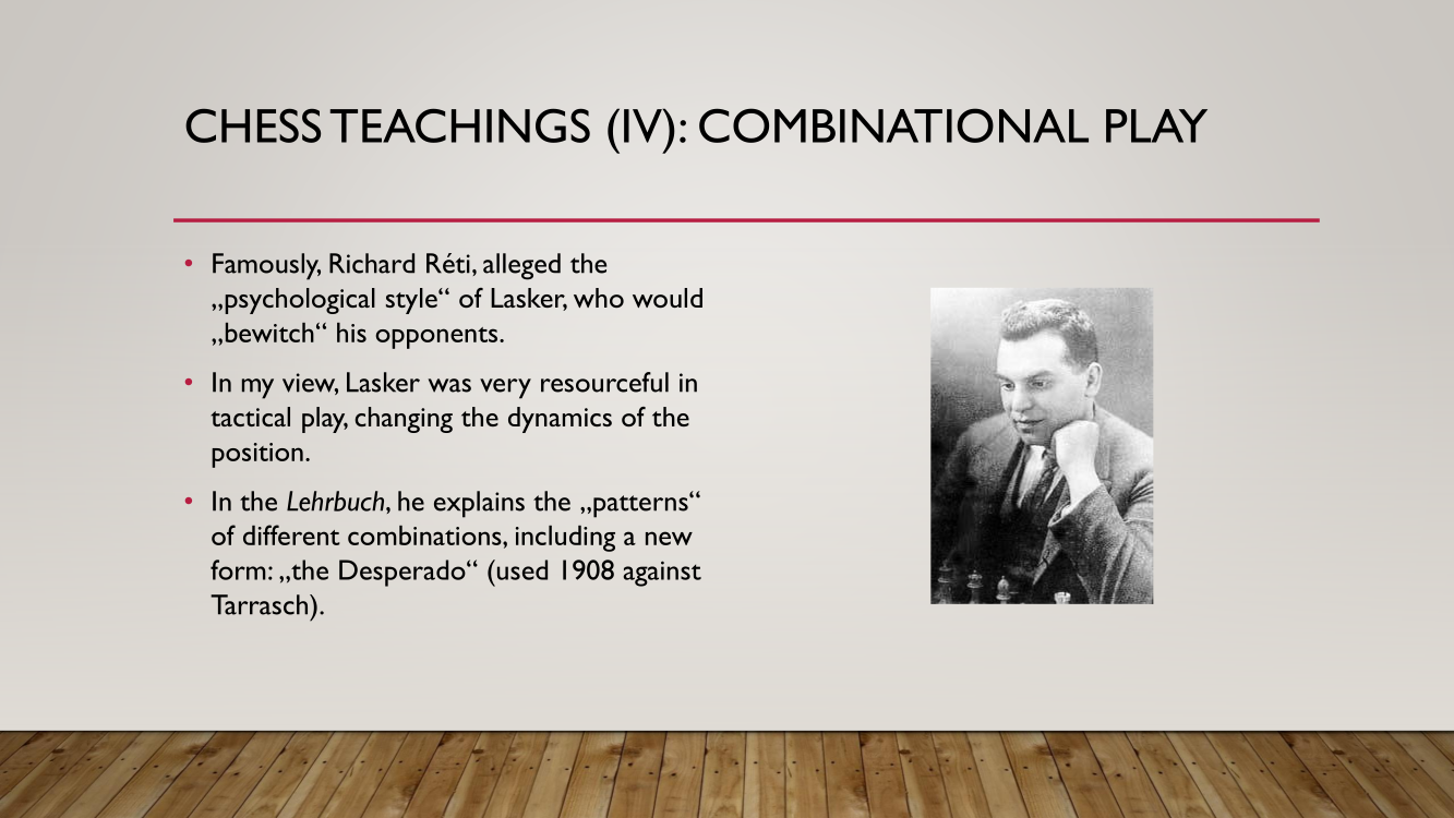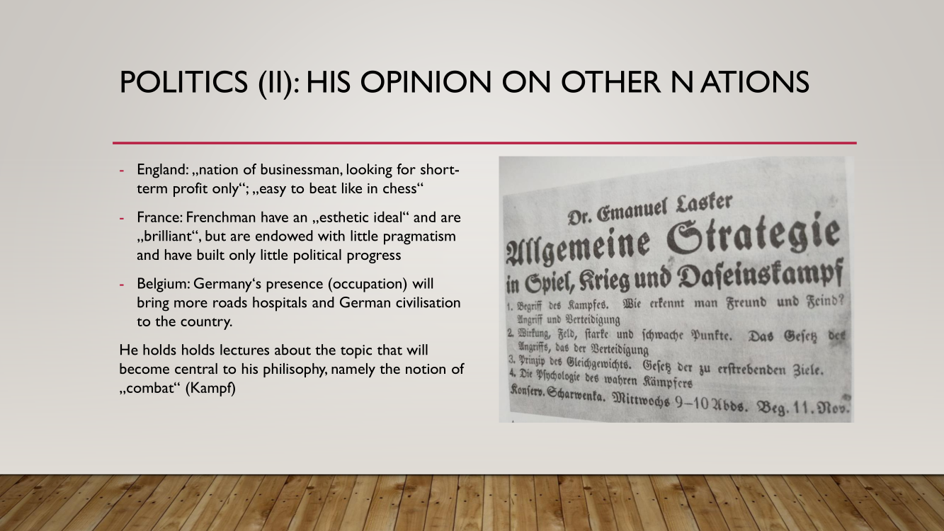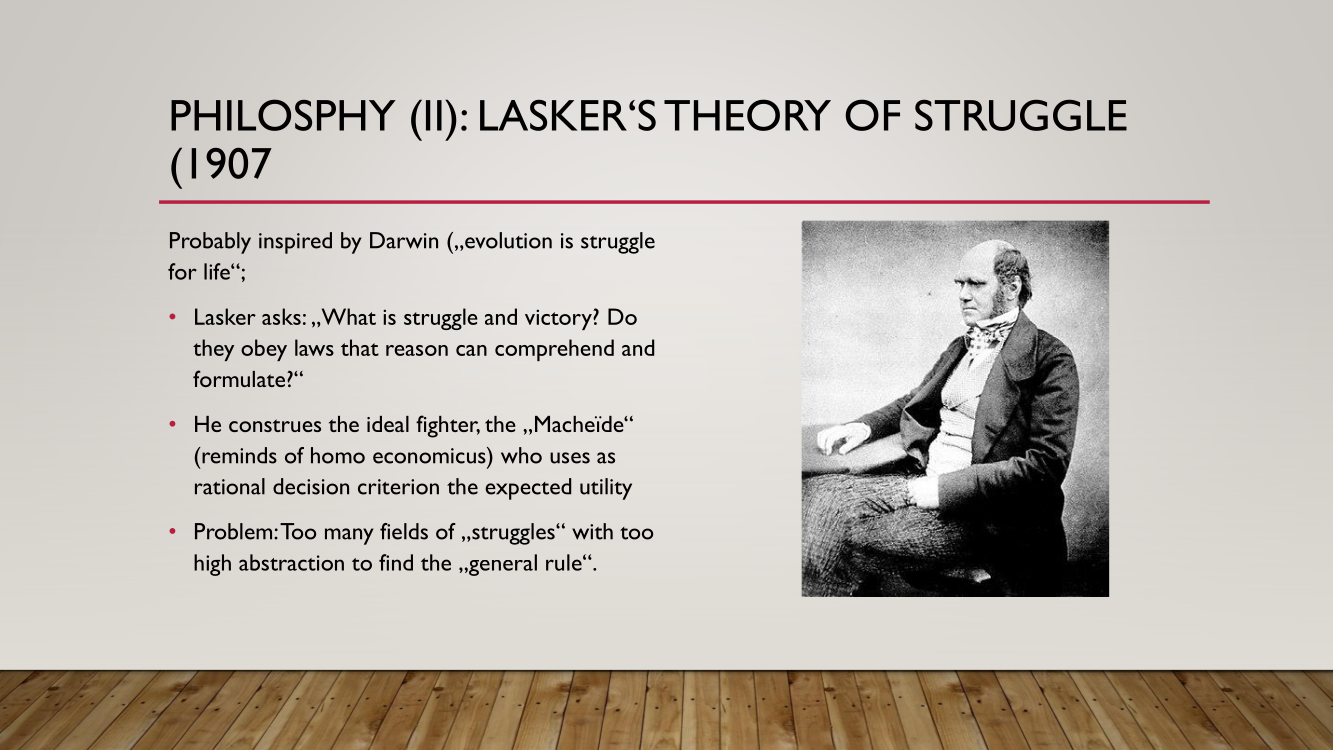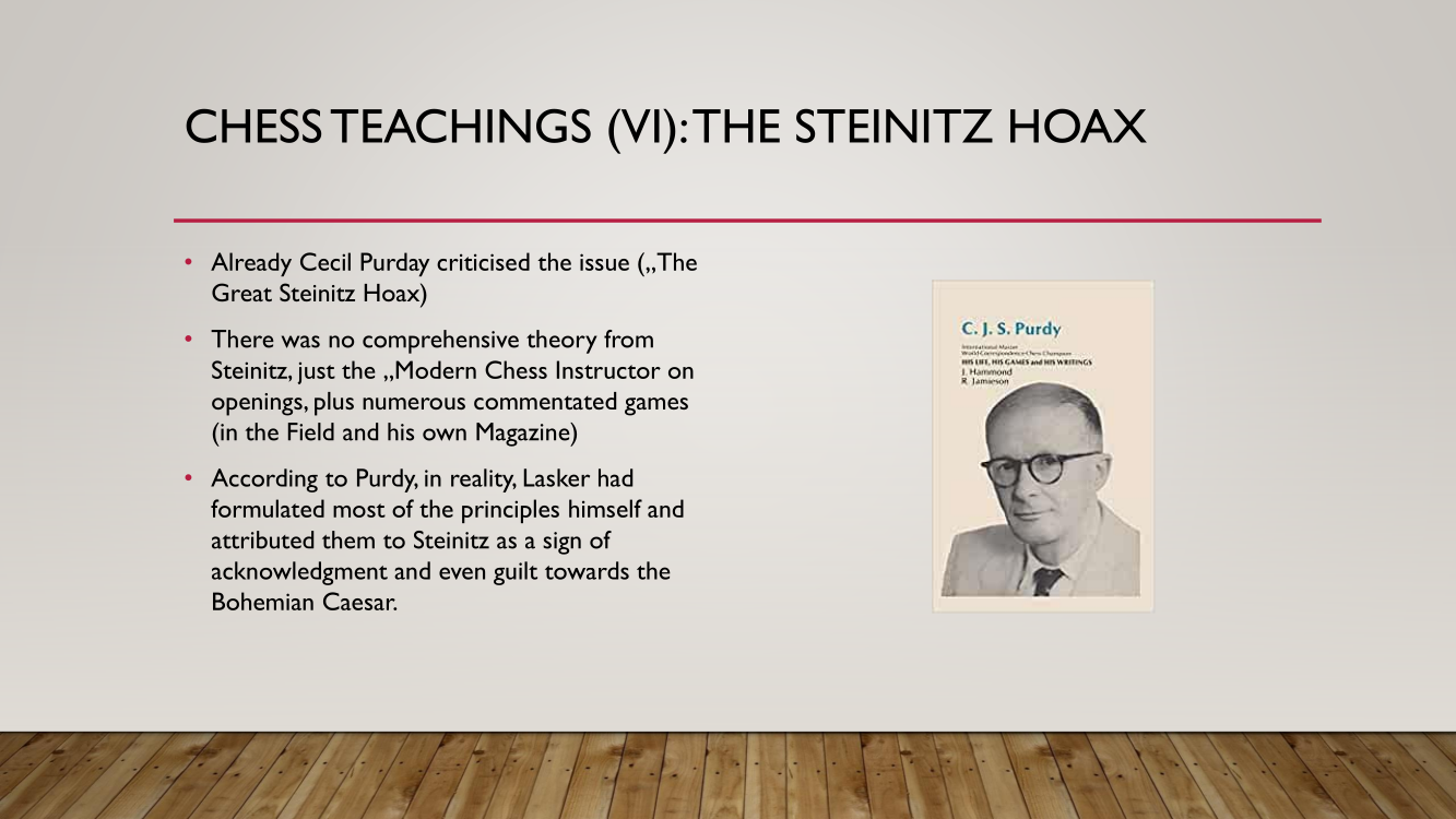 Frank presented the lecture "Lasker's Difficult Journey after the First World War" by Frank Hoffmeister, of which you have the support below.