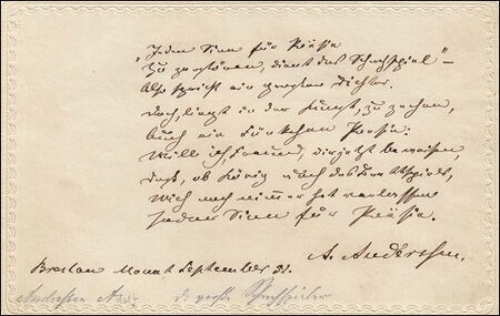 Among the intriguing items of memorabilia was a chess related poem written by Adolf Anderssen a few weeks after winning the London 1851 international chess tournament. This sold for €1,500.