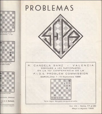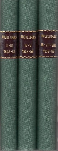 - A good run of the Spanish magazine Problemas (Sociedad Española de problemistas de Ajedrez) consisting of volumes II to VIII for the years 1947 to 1966, published in Barcelona and attractively bound in three volumes, sold for €1,110. Cleveland only has a very incomplete set of this magazine. 24 issues of Problemas for 1946 and 1947 were sold separately for €82.