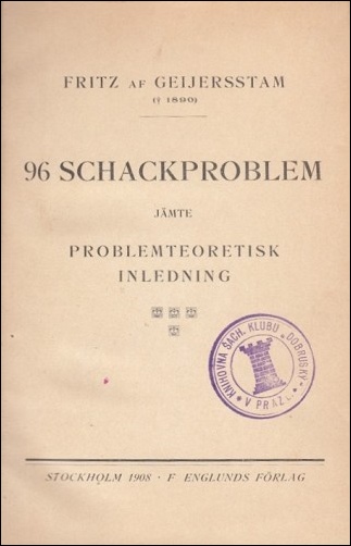 - 96 Schackproblem , by Fritz Geijersstam, Stockholm 1908: €61.
