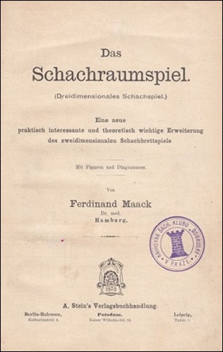- Das Schachraumspiel, by Ferdinand Maack, Berlin etc. 1908. An unusual work on three-dimensional chess: €79.