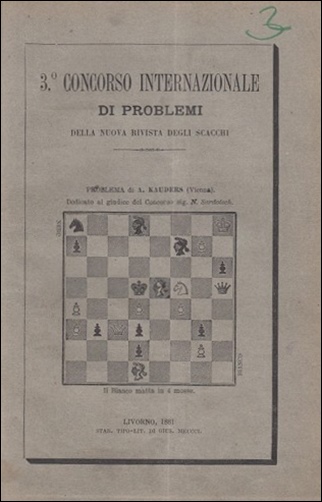 - Raccolta dei migliori problemi 1877-1879, Raccolta dei migliori problemi 1879-1880, Concorso internazionale di problemi, 1881. The last of these is not in the LN 1955 catalogue and is one of only 50 copies: €705.