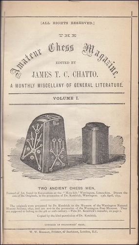 - A complete three volume run of The Amateur Chess Magazine, edited by James Chatto, London, 1872 to 1874, realised €270. From May 1873 the title changed to The Amateur and the chess content gradually diminished in favour of other amusements.