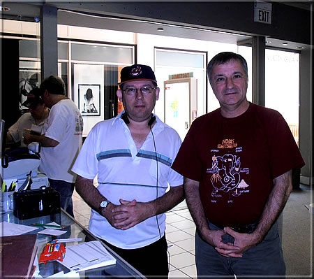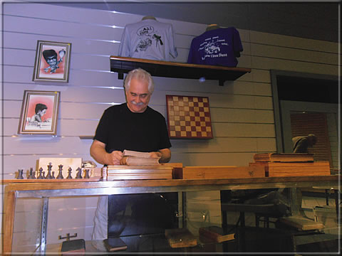 Sunday morning we had arranged transportation to Lary Rust’s chess shop where he agreed to host the book exchange as the Library was closed. Lary’s shop may be unique in the US as it is situated in a large shopping mall. Lary gave a brief talk on how he decided to locate his shop in a mall and how he operates it. Also both Maurice Carter and Lary Rust had some very nice gifts for us. Then the meeting deteriorated as everyone started combing Lary’s extensive books looking for wants. I am still not sure if Jurgen Stigter has left Lary’s shop till now!