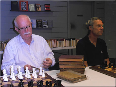 The simultaneously (Friday/Saturday) held world title match of checkers which took place in the auditorium of the CPL and which was accompanied by an exhibition should be mentioned shortly. Unfortunately the general interest was very poor, apart from the two players and five officials only five spectators could be spotted. We offer a selection of photos in this picture gallery.