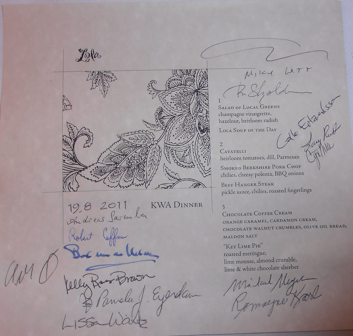 After three plus exhausting hours of chess, where better to go than to one of Cleveland’s finest restaurants, Lola, where we all could relax and talk among ourselves in a private dining room. Not only did almost all members join us but we were fortunate to have three people from the Special Collections room join us (actually one ex-person). The meal and company were great and we all headed back to our rooms late that night.