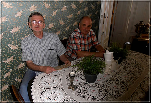 At about 9 o’clock on Saturday morning Tomasz Lissowski met me at the Warsaw airport, and we went to his home. After having attended to some duties at the weekly farmer’s market (Here I learned quite a lot about the Italian origin of Polish vegetables, and also the photo of Tomasz at the "New Archive" was taken on this occasion.) we met Jerzy Moras (Penelopa Publishing House) and went to Łódź. There we strolled to the alleged chess places along the main street ulica Piotrkowska, in 1906 it was No. 111 – today the German Honorary Consolate is located there.