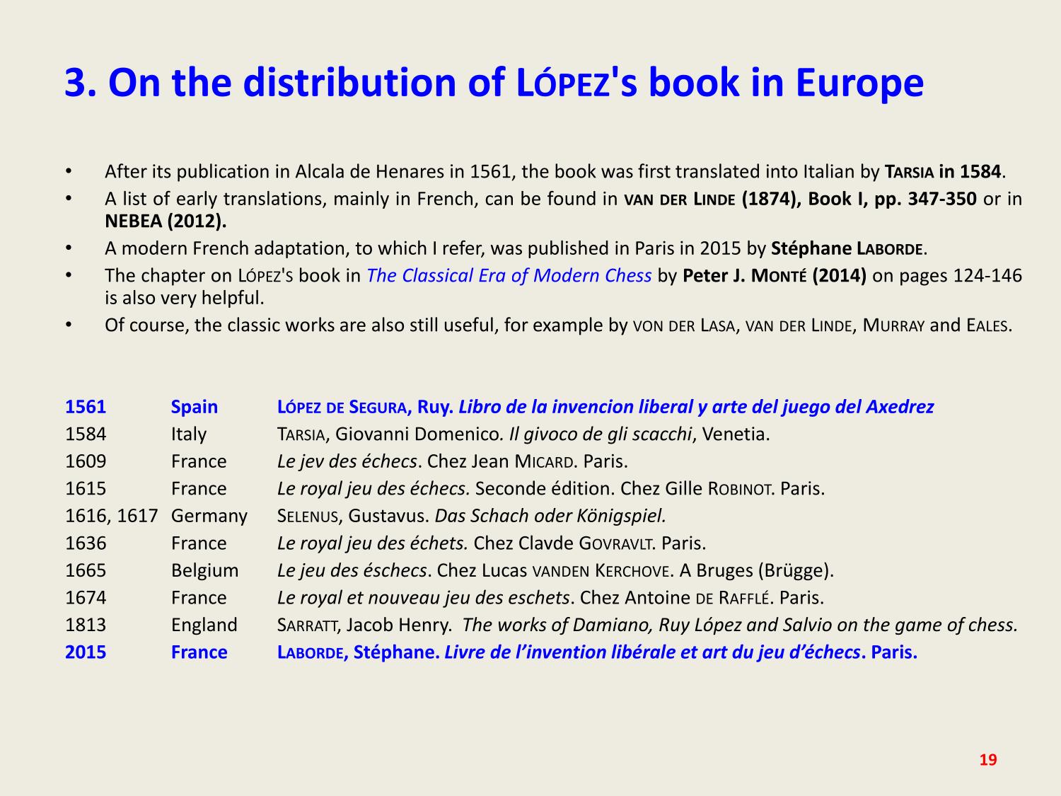 Rodrigo (Ruy) LÓPEZ DE SEGURA and his reception in Europe
