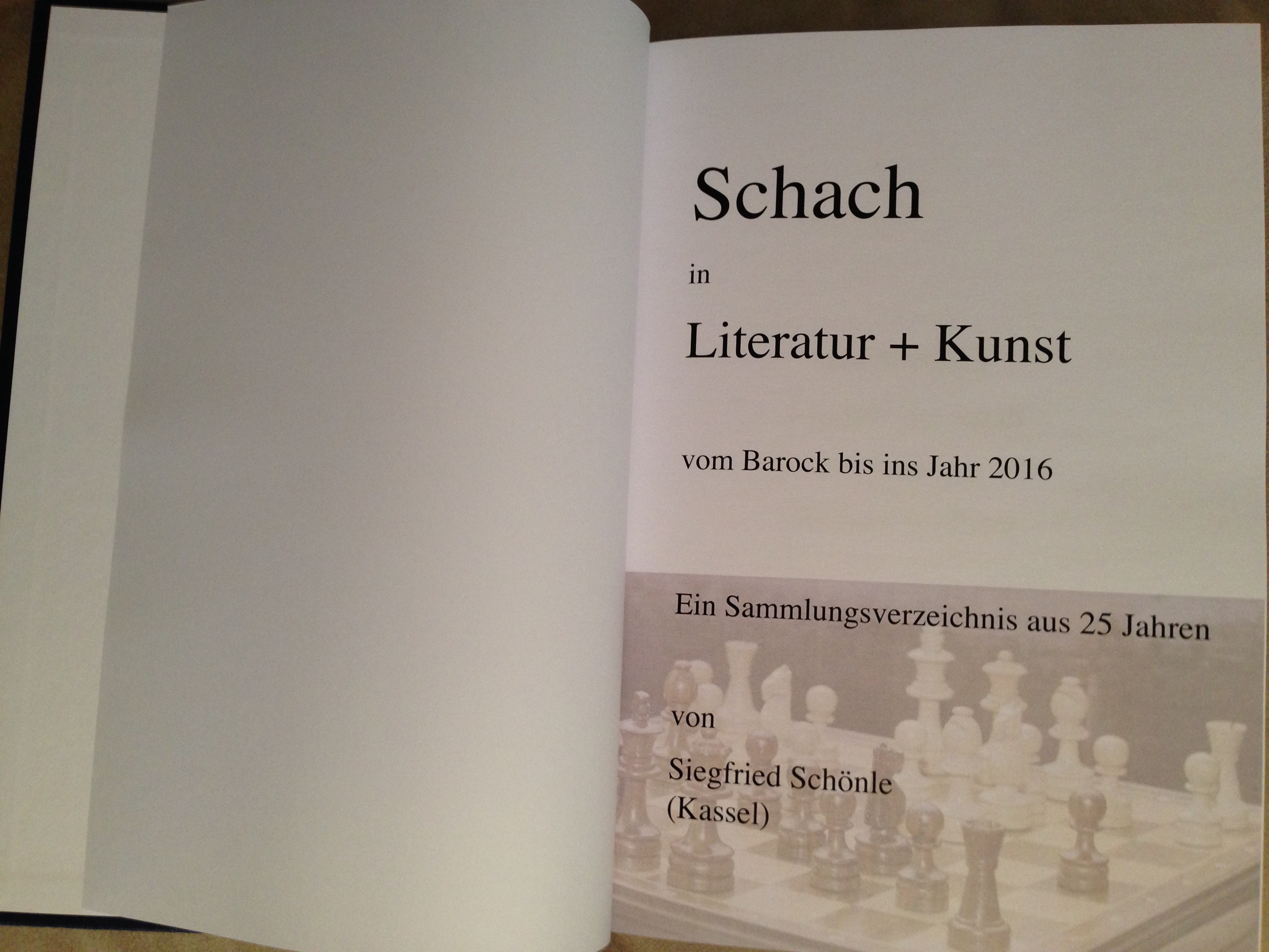 Our member Siegfried Schönle from Kassel in Germany, whom many may remember from his contribution to the congress in KWA meeting Kiel, has compiled a work covering his extensive collection on the theme of chess in literature and art. The book is in German language.