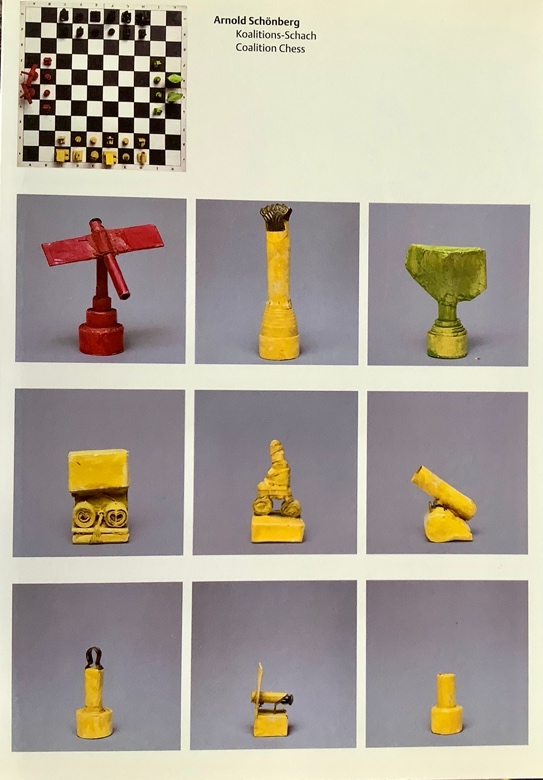 The times of social upheaval around 1920 did not leave chess untouched either. Some things in society and art should be and become new and different. Arnold Schönberg (1874-1951) developed his "coalition or alliance chess". A chess game with four parties uniting and fighting in two coalitions.