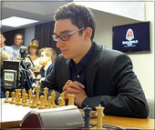 This third round (on 29th of August) should give direction to the whole tournament. The ailing and indisposed Levon Aronian was outplayed by MVL (Maxime Vachier-Lagrave) – the start of a "long castling" 0-0-0 to be followed by draws only in the second cycle. Hikaru Nakamura missed a big chance to inflict the third defeat in a row on Veselin Topalov, and in the game of the day, Carlsen vs. Caruana, the world champ overlooked a rook check he had seen a few moves before, hence he had to give up some moves later.