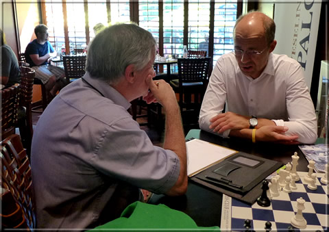 On the fringe of the event I could ask some questions to Caruana’s trainer Vladimir Chuchelov who is a strong grandmaster himself and who has played in the German Bundesliga for many years (at Katernberg). In spite of massive computer use he doesn’t consider classical chess as exhausted at all, and Caruana’s "seven in one sweep" gives him every reason to that.