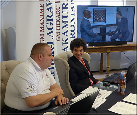 Especially impressive was The War Room, the IT command center in the basement where the webcast including the internet comments of the trio Jennifer Shahade – Yasser Seirawan – Maurice Ashley, the video transmissions from the analysis rooms and the outside interviews were perfectly operated.