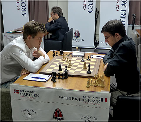A similar picture in round 7: MVL imagined things in his game against Caruana and abstained from castling, so his king was at the mercy of the opposing forces. Caruana’s phantastic score: 7/7!!