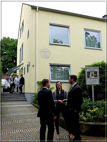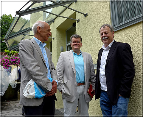 Harrie Grondijs, Guy Van Habberney and Per Skjoldager at the entrance of Theaterwall 17. -