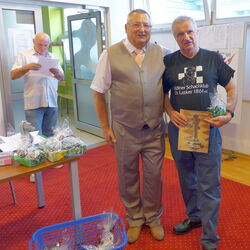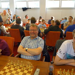 May be the break was to long for friend Bernd, he seemed to be too sleepy and overstepped the time limit in two games - in totally winning positions. Your humble one was very lucky - may be the Lasker molecules inhaled were also inspiring - so at the end I was able the reach a decent position in the final ranking. But also friend Tomasz did well, so CH&LS team scored 18 of 27 = 66,6%.